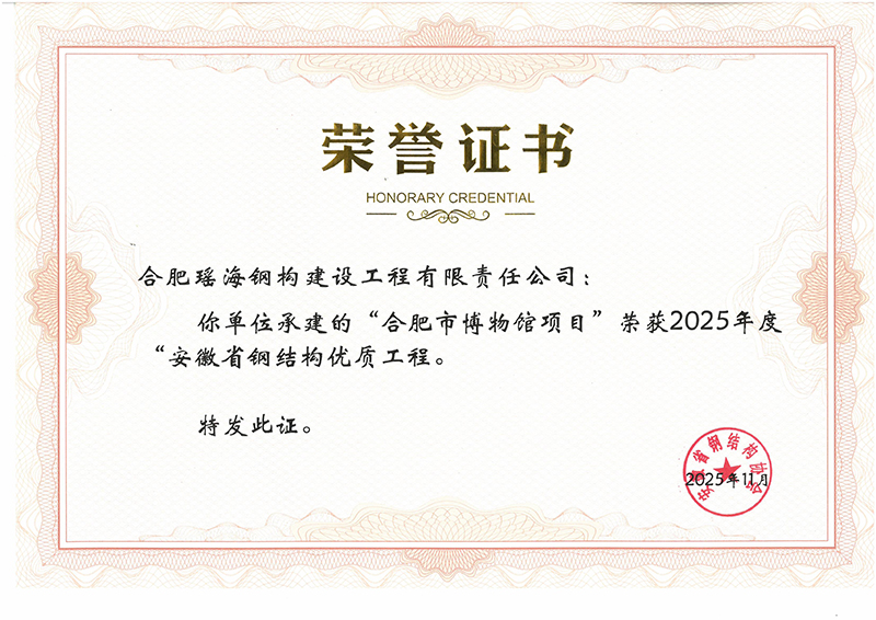合肥市博物馆荣获sunbet申搏省钢结构优质工程奖