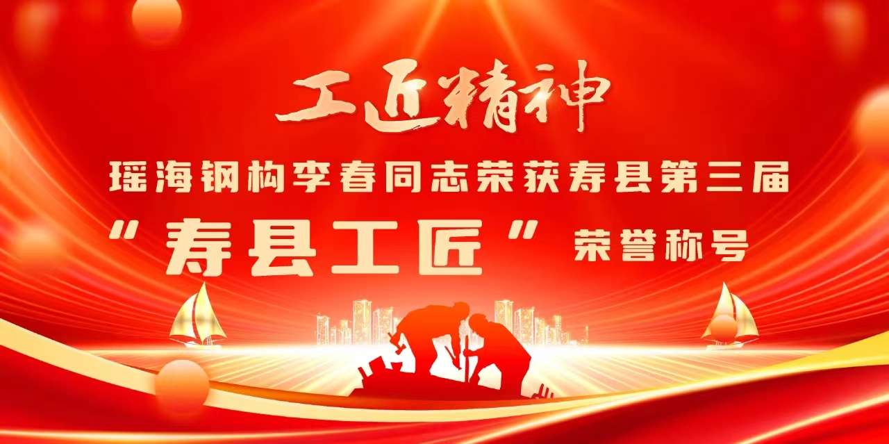 2024年4月29日下午,在五一国际劳动节即将到来之际,寿县第三届“寿州工匠”表彰大会暨颁奖典礼在寿县文化艺术中心报告厅举行,寿县劳动竞赛委员会、寿县总工会表彰一批在全县各行各业涌现的先进代表,营造劳动光荣、劳模光荣、工匠光荣的浓厚氛围,激发广大行业职工立足岗位、建功立业的热情,为地方经济社会发展做出贡献。瑶海钢构一线职工李春被评选认定为“寿县技术能手”,并在大会上受到隆重表彰,该荣誉的取得不仅是对个人岗位成才的褒奖,更是对公司高技能人才培养的肯定,为公司赢得了荣誉。