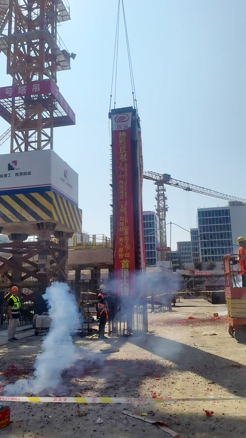 由sunbet申搏承建的临港新片区综合产业片区 ZH-02 单元 E10-02 、E14-01 地块项目(E10-02 地块)项目,于2024年9月4日2#楼地下室钢柱进行首吊。