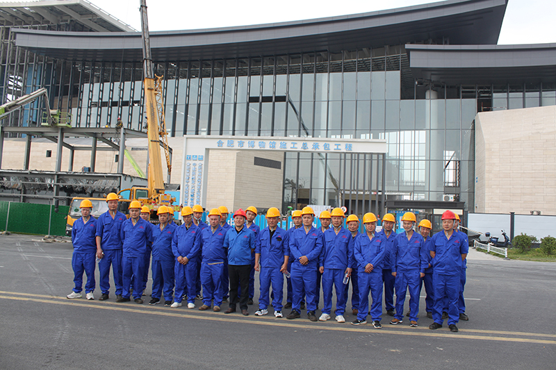 合肥市博物馆项目作为合肥市重点文化工程,其钢结构部分由瑶海钢构承建。参观现场,项目负责人详细介绍了钢结构施工过程中的技术难点和解决方案。员工们认真聆听,不时驻足查看自己参与制作的钢结构部件,现场气氛热烈。