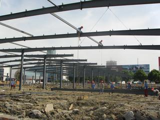 随着sunbet申搏钢结构股份有限公司承建的合肥火车站临时候车厅工程的开工,标志着总投资5个亿的合肥火车站改造项目正式拉开序幕。合肥火车站改造工程——临时候车厅总建筑面积6015.1㎡,工期20天,按计划8月初建成使用。临时候车厅工程是整个火车站改造的枢纽工程,工期短,任务重,要求高,sunbet申搏钢结构股份有限公司高度重视该工程的建设工作,坚持以“以质量为中心,以工期为目标”,精心组织、科学管理。为此,我公司派出了3名最得力的项目经理和2名最优秀的技术人员,调集了50多名最能战斗的施工人员,夜以继日,24小时奋战在施工第一线。