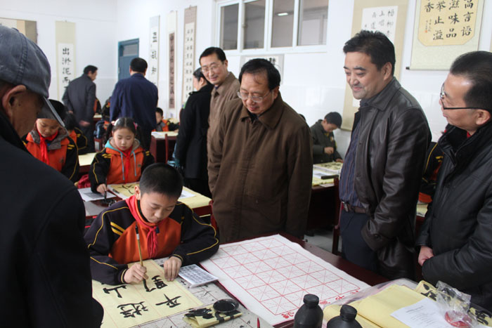 仪式结束后,领导们兴致勃勃地欣赏了由长淮小学精心准备的文艺节目《春江花月夜》《少年中国说》《弟子规》等,并观看了书法班小学生的书法作品,看到小学生们正在认真地练习毛笔字,无不啧啧赞叹。