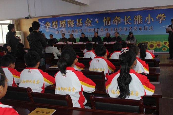 本报讯:2012年11月30日,一场主题为“幸福瑶海基金•情牵长淮小学”的爱心捐助仪式在长淮小学四楼多媒体教室隆重举行,本次活动得到瑶海钢构的大力赞助,冠名“长淮小学•瑶海钢构手球队”正式启动,得到本次冠名赞助的还有长淮小学•宝文国学班,瑶海区人大、瑶海区工商联、瑶海区委宣传部、区教体局等领导应邀列席会议。