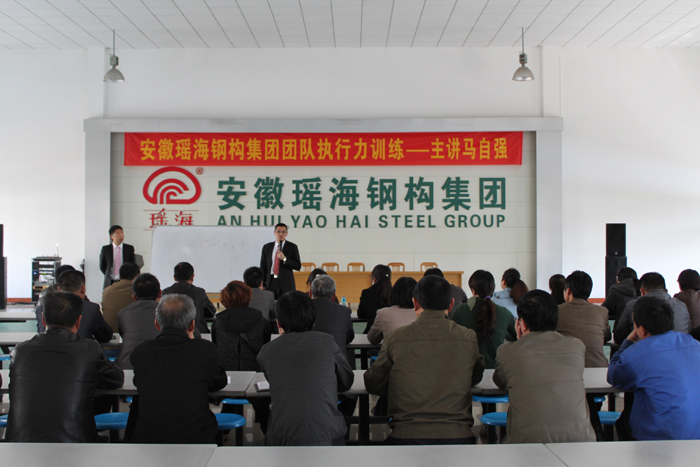 本报讯 :根据公司实际情况和实际需求,为进一步加强员工培训,提高全员整体素质和执行力,2013年4月11日下午,集团公司特邀请金牌讲师马自强老师为企业员工做了一场“团队执行力训练”专题培训。公司领导班子也积极参与了本次学习。马老师用丰富的案例和互动活动,充满激情而又不失理性的为与会人员剖析了管理的基本理念、管理的误区、执行的要素、布局思维等重要论题,强调以标准流程来促进工作效率、以完善的制度来管理人、以科学的机制及良好的环境来激励人,再就是管理者应该承担其应有的责任,员工的态度取决于其直接领导等等,他知识丰富,讲解深刻,以一个个生动的故事和案例,精彩的论证了执行力和成功的关系,让现场听众开阔了思路,认识到自身在工作执行力方面的不足,同时明确了今后工作改进的方法。“天下无不成之事,各守乃业,则业无不成”。只要人人都有一颗良好的心态,做好自己的事,每件事都站在公司根本的立场上出发,公司中的每个部门都团结协作,上下一心,和谐发展,相信我们公司必会茁壮成长,会走向更好。这才是真正的执行力结果!