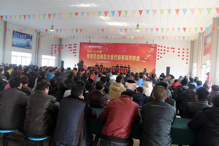 本报讯:2014年1月24日下午,sunbet申搏钢构多功能厅内,一排排优秀员工,一面面锦旗、一本本荣誉证书、一件件家纺产品、一串串灯笼及红红的舞台,和着《恭喜发财》欢快的乐曲,将瑶海钢构多功能厅装扮的格外喜庆,在这里正在举行瑶海钢构2013年度年终总结表彰大会暨新春联欢会。