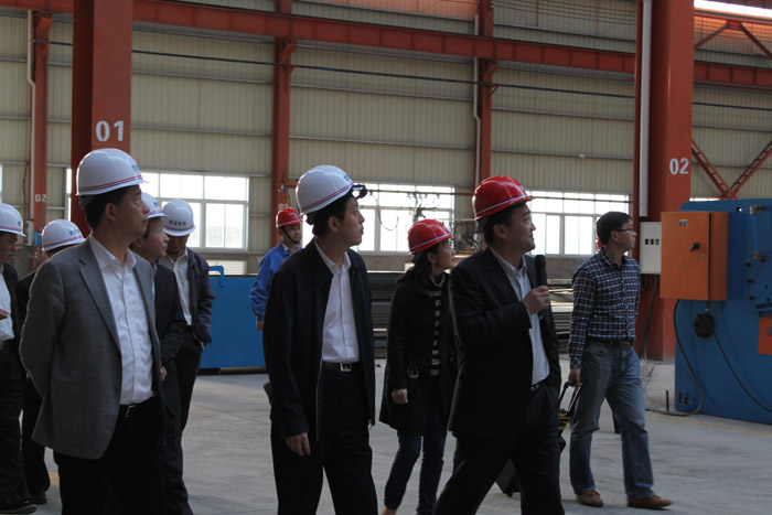 随后,谢广祥一行参观了2号厂房,谢省长详细地询问了新桥事业部目前的发展情况。凌董谈道瑶海钢构新桥事业部已于今年2月份正式开始投入生产,已经接下了赛福泰斯科技有限公司和三联泵业两大订单,各生产线正有条不紊地进行生产,生产车间前的办公楼和员工宿舍正在紧张地施工中。谢省长肯定了瑶海钢构新桥事业部的发展,鼓励瑶海员工克服困难,不断进取,为瑶海钢构的发展做出贡献,为整个中国钢结构行业的发展做出贡献。