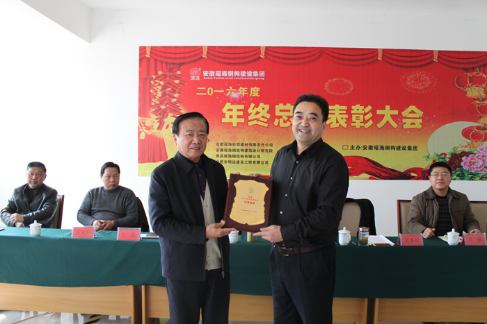 会议按照议程逐一进行,第一项由董事长凌红兵作2016年度述职报告:2016年在全体员工的共同努力下,取得了如下的成绩:一、突出效益机制,立足稳中求进。今年我们办理了以瑶海钢构建设集团为中心的一切资质转移手续,目前瑶海钢构建设集团拥有房屋建设施工总承包一级资质,钢结构一级资质,钢结构制造壹级资质,建筑金属屋(墙)面设计与施工特级,加以配套的有建筑行业(建筑工程)设计乙级;二、强化管理机制,规范精细管理:着重开展了如下工作:1、绩效考核制度;2、突出贡献奖励方案;3、推出了今目标月计划制度;4、员工培训管理;5、阿米巴管理。三、实施调整经营思路,加快转型:今年,瑶海钢构提出了7大经营原则,同时提出了1+3管理模式,“1”是指一个平台,暨sunbet申搏总承包这个平台,“3”是指钢结构重钢加工基地、大型物流基地及海内外工程)。同时确定“我们永远追求卓越,信誉始终如一”的企业理念,以“高品质服务客户,让每一位员工幸福体面的生活”的企业使命,以“以绿色的产品、建造人类的幸福家园”的企业愿景,通过不断提升公司核心竞争力,迅速建立起领先优势,成为高端钢结构领域最优秀的制造商,最优秀的建筑总承包营建商,力争成为全国钢结构十强企业。