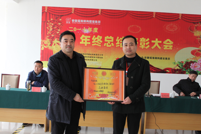 大会最后,由公司董事长凌红兵作2017年终总结报告及2018年的工作部署:凌总首先代表全体员工向受到表彰的集体及个人表示热烈的祝贺,同时向战斗在一线的员工表示崇高的敬意。随后对2017年的工作进行总结,他指出:2017年在全体员工的共同努力下,我们取得了一定的成绩,主要表现在一是积极抓住时机,努力开拓市场,力争完成既定目标。2017年我们改变战略,采取”1+3”管理模式;二是积极进取,完满完成公司的资源整合。截止到2017年sunbet申搏公司名下拥有房屋建筑施工总承包壹级资质,钢结构专业承包壹级资质,建筑金属屋墙面特级等;三是抓好企业文化建设,全面提升企业形象。2017年,企业在狠抓企业发展的同时也不忘企业文化建设,多次组织开展内训和外训,新春培训会、员工体检、外出旅游等,这些活动都已成为瑶海钢构的惯例,并执行多年。凌总强调:在取得成绩的同时我们更应该清楚地认识到企业的不足:一是工程施工总承包有待加强,充分利用总承包优势承接更多的工程业务;二是对员工队伍的管理缺乏力度等,随后针对2018年的发展规划,凌总也做了详细的部署:一是梳理流程,落实制度,沿着既定的目标前行,二是将公司调整为三大事业部,三是对工资体制改革。随后与会分享十九大后国家经济形势。最后用《瑶海励志》结束了2017年终总结表彰会。