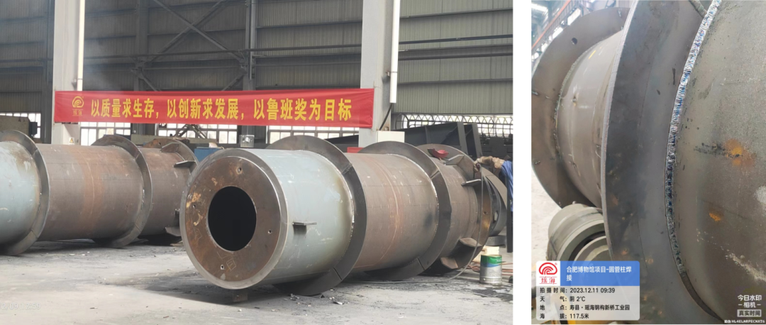 目前合肥市博物馆项目已在瑶海钢构新桥加工基地加工生产。为了确保博物馆项目的顺利进行,公司对此次项目高度重视,各部门紧密协作,严格按照工艺流程、焊接标准及质检要求进行操作。同时,特派技术工艺师、质量工程师等专家在现场进行指导和检查,确保每一个环节都精益求精。