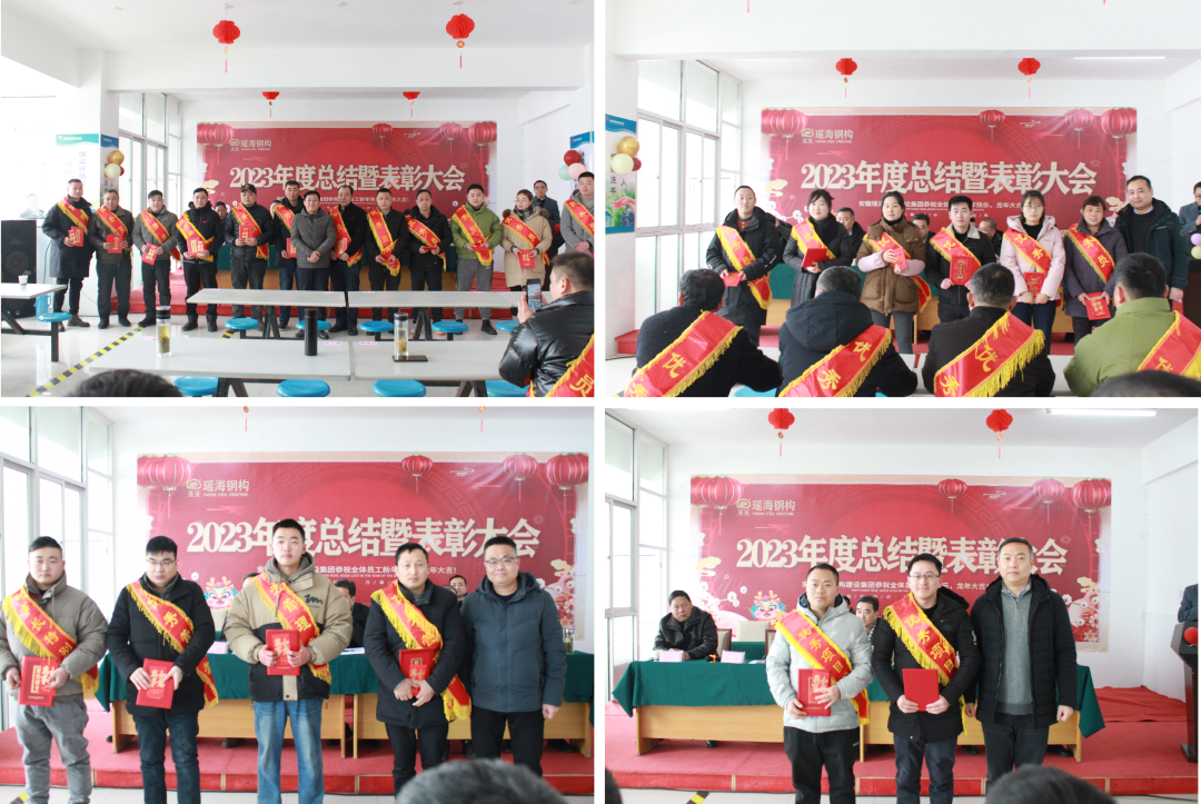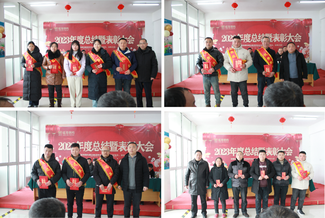 在听取各部门的工作总结后,会议进行到表彰环节。对2023年表现优异的优秀员工、先进管理者、优秀项目经理、红管家、先进班组和先进集体、董事长特别奖、寿县焊工技能大赛技师奖分别进行表彰及颁奖。随后优秀员工代表作获奖感言。希望在新的一年里我们承继优秀者的足迹,用热忱与坚韧,用真诚与执著,用勤奋与质朴,用真情与汗水,继续书写瑶海钢构新的华章!
