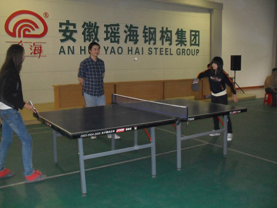 本报讯:2011年10月22日,首届“瑶海钢构”杯乒乓球比赛在公司多功能厅拉开了帷幕,本次比赛分男子团体赛和女子个人赛。比赛按循环赛、淘汰赛直至最后的冠亚季军争夺赛,工会主席王一麟、团支部书记张庆国分别担任各组的裁判。