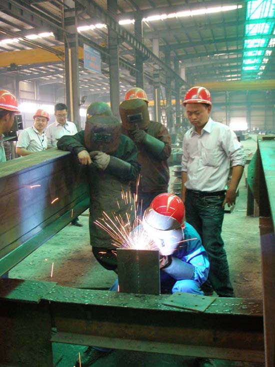 本报讯:2011年4月29日,“瑶海钢构”杯首届职工技能焊接、气割赛在瑶海钢构生产车间拉开帷幕,生产部经理及各车间厂长参加了此次的比赛现场。