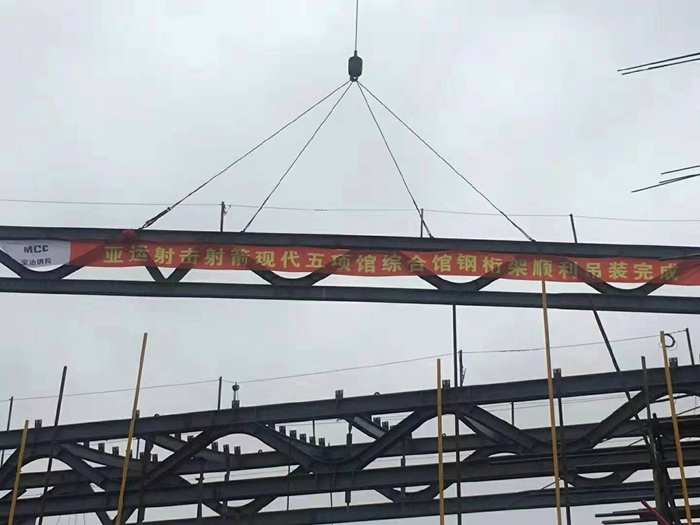 12月25日,从浙江富阳亚运射击射箭现代五项馆安装现场传来喜讯,其中一个主体综合馆顺利封顶。 该项目由郑州宝冶钢结构有限公司与瑶海共同联姻完成,主要由亚运综合馆、射箭辅房及飞碟辅房三大单体组成。 该项目总量连屋面系统约4100多吨,瑶海钢构公司负责所有的项目单体制作,从下料,组立,埋弧焊接,拼焊和喷涂到发货工序,每个工序都是精准交付,受到现场业主的好评。瑶海钢构公司从今年6月份签订合同开始,公司以方志总经理为首的精英团